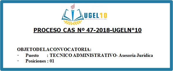 27 Sep,2018 Convocatorias COMMENTS CAS N° 47 Convocatoria Técnico Administrativo - Asesoría Jurídica ver convocatoria y anexos