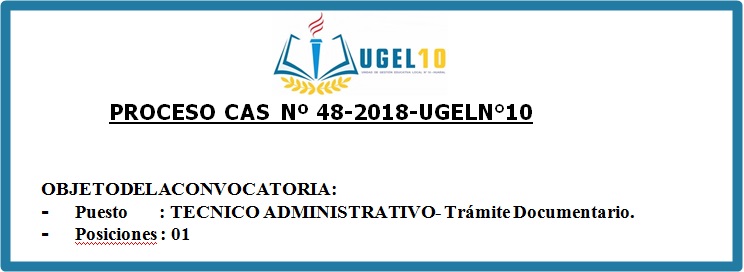 27 Sep,2018 Convocatorias COMMENTS CAS N° 48 Convocatoria Técnico Administrativo - Trámite Documentario. ver convocatoria y anexos