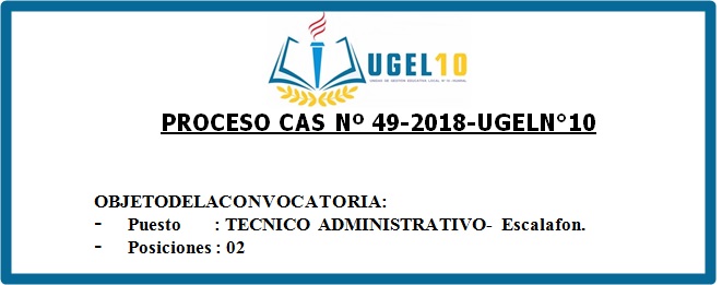 27 Sep,2018 Convocatorias COMMENTS CAS N°49 Convocatoria Técnico Administrativo - Escalafón ver convocatoria y anexos