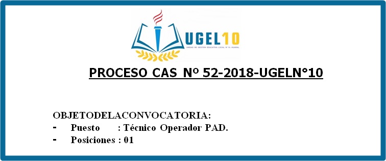 27 Sep,2018 Convocatorias COMMENTS CAS N°52 Convocatoria - Técnico Operador PAD. ver convocatoria y anexos