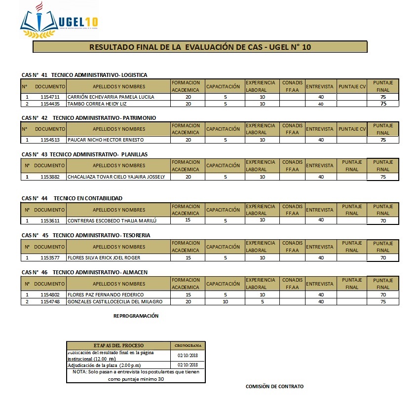 02 Oct,2018 Convocatorias COMMENTS Ressultado Final de Evaluaciòn CAS 41, 42, 43, 44, 45, 46, 48, 49, 50, 51 y 52