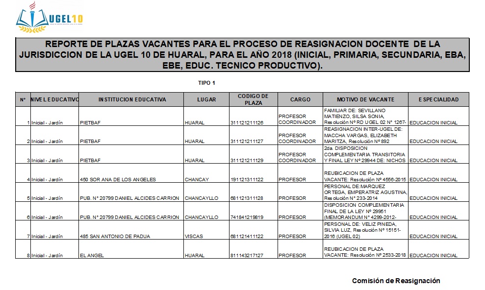 16 Oct,2018 Convocatorias COMMENTS Plazas Vacantes para el Proceso de Reasignación Docente 2018 [Nivel Inicial]