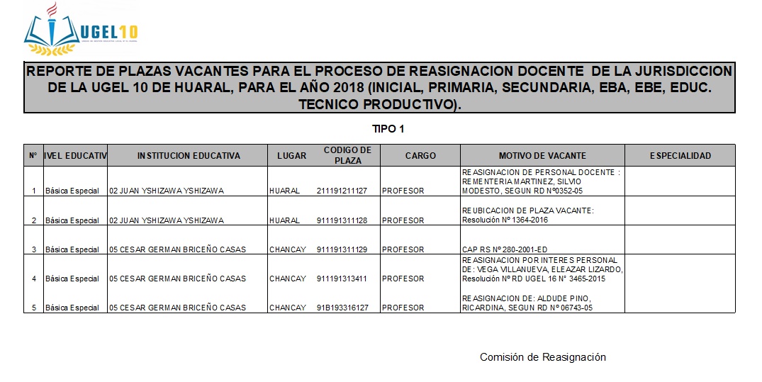 16 Oct,2018 Convocatorias COMMENTS Plazas Vacantes para el Proceso de Reasignación Docente 2018 [E.B.E]