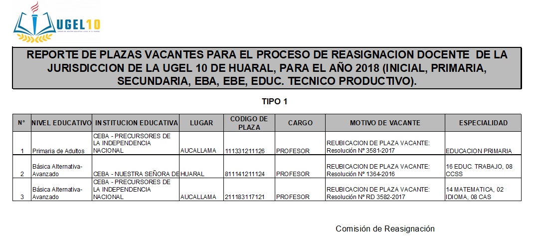 16 Oct,2018 Convocatorias COMMENTS Plazas Vacantes para el Proceso de Reasignación Docente 2018 [E.B.A]