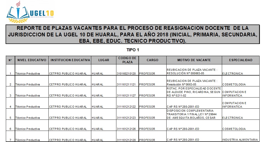 16 Oct,2018 Convocatorias COMMENTS Plazas Vacantes para el Proceso de Reasignación Docente 2018 [CETPRO]