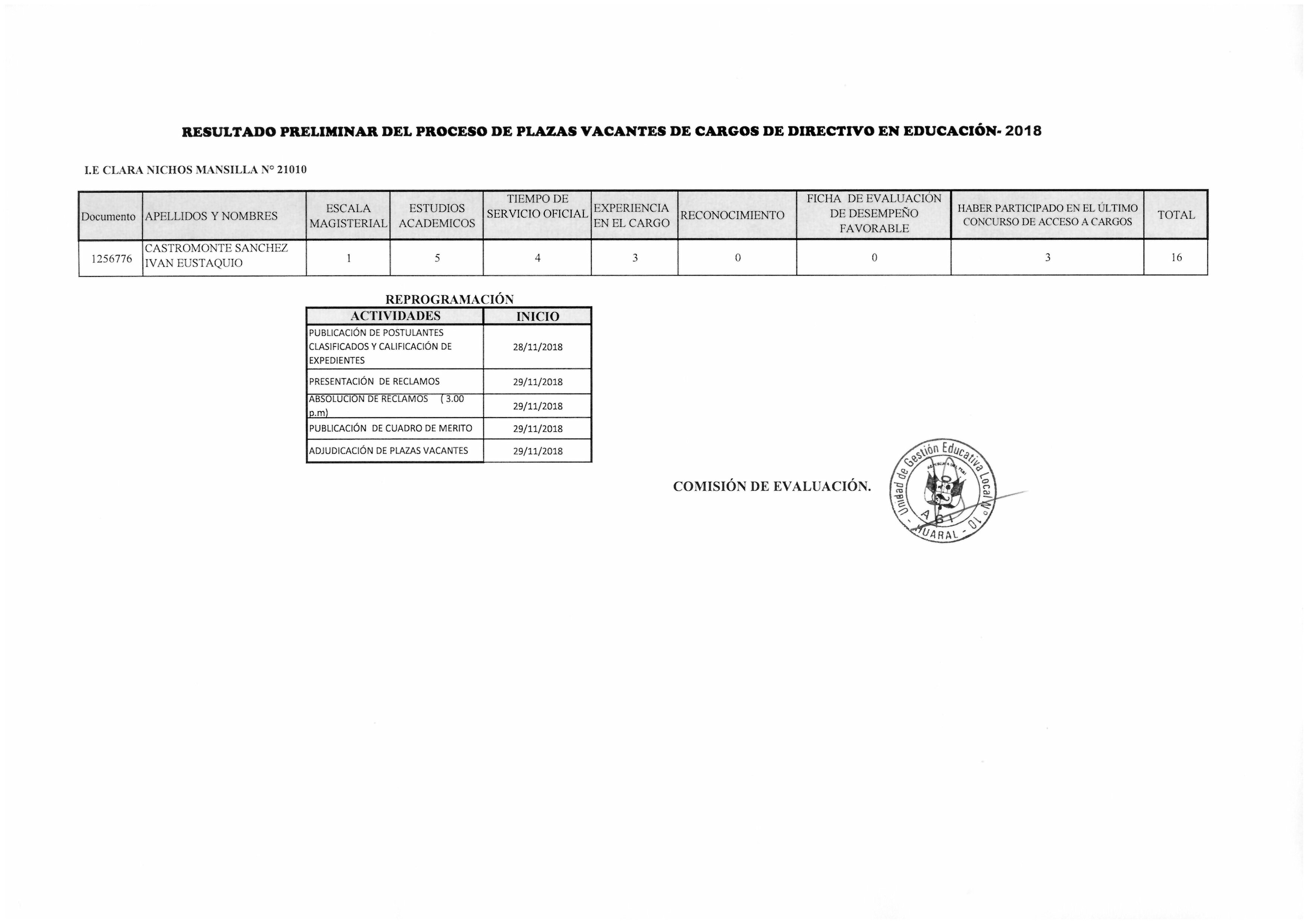 28 Nov,2018 Convocatorias COMMENTS RESULTADO PRELIMINAR DEL PROCESO DE PLAZAS VACANTES DE CARGOS DE DIRECTIVO EN EDUCACIÓN-2018
