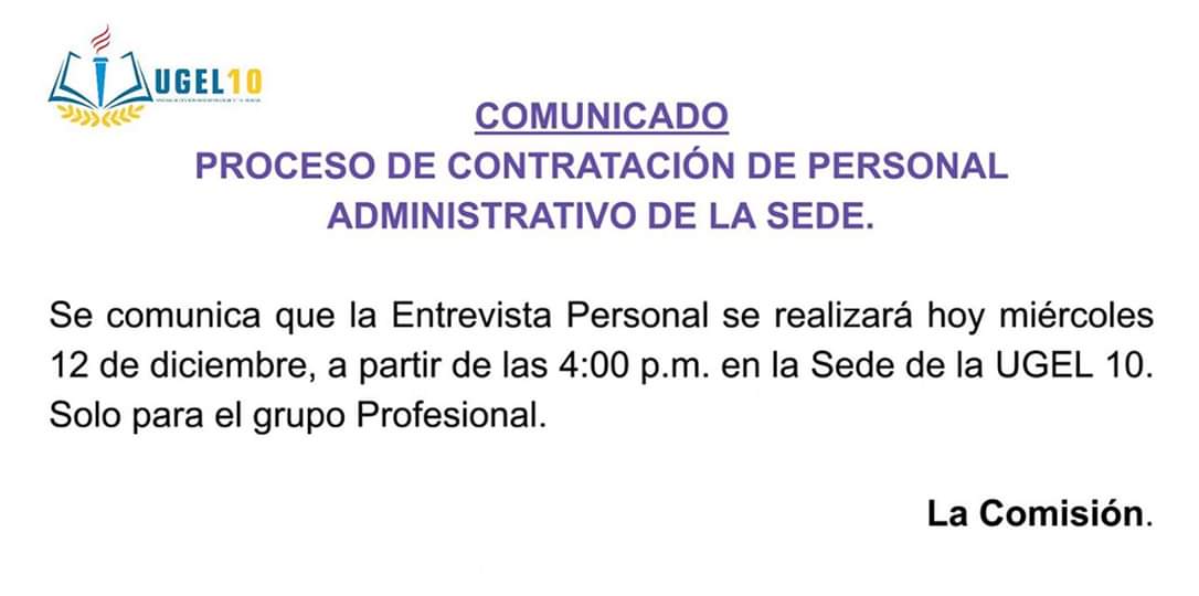 12 Dic,2018 Convocatorias COMMENTS Programación de Entrevista Personal del Proceso de Contratación de Personal Administrativo de la Sede.