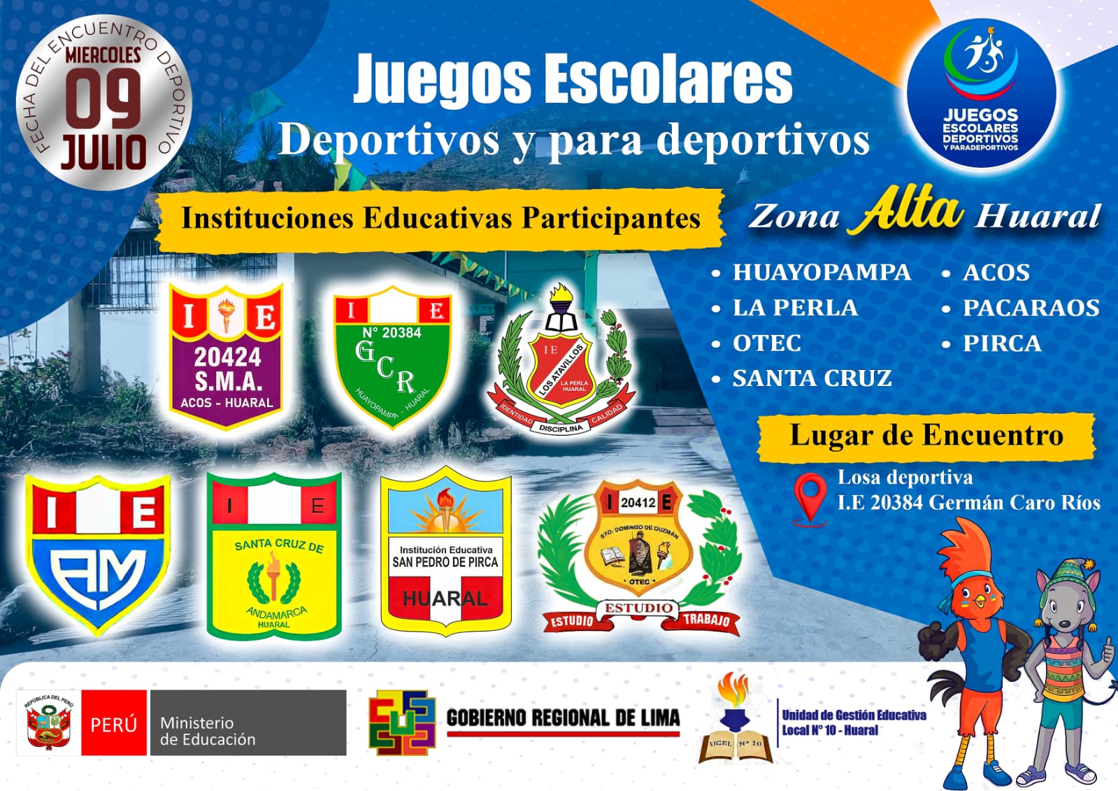 Compartimos el cronograma oficial de los Juegos Escolares Deportivos y Paradeportivos (JEDPA) 2025 de la zona alta de Huaral, que iniciarán este miércoles 09 de julio.