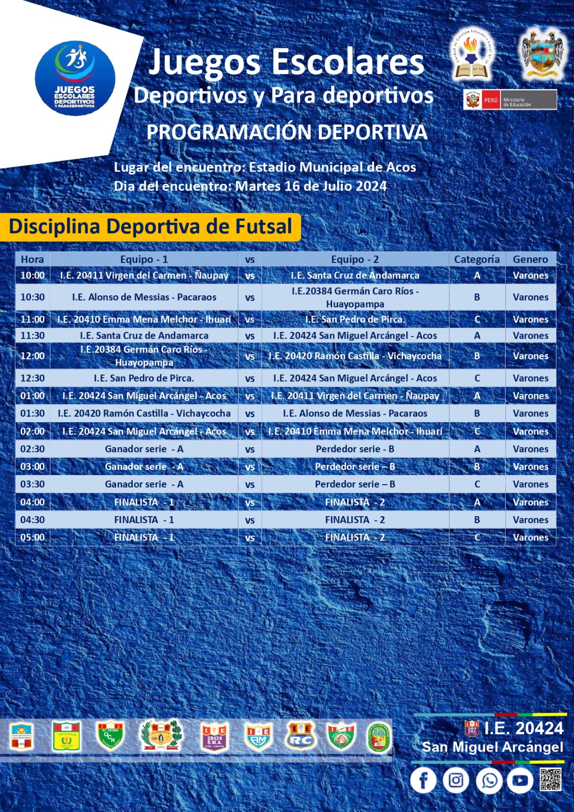 Previous Next 11 Jul,2024 Eventos y Capacitaciones COMMENTS JUEGOS DEPORTIVOS Y PARADEPORTIVOS - SAN MIGUEL DE ACOS 2024 Leer más